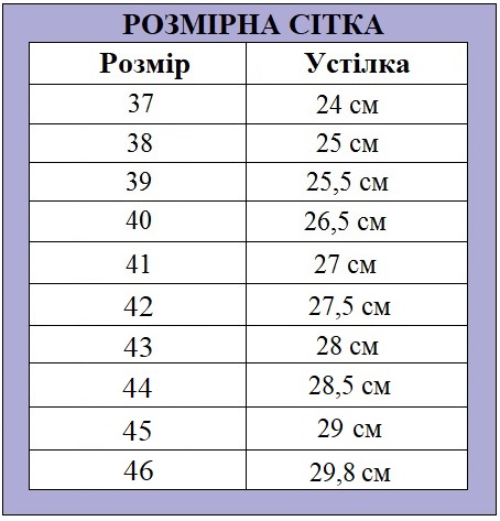 Розмірна сітка (довжина устілки):