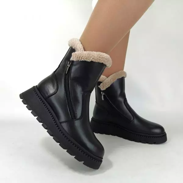 Ботинки женские из натуральной черной кожи. Зимний вариант исполнения. Изготовлены на платформе для повседневной носки. Удобные, комфортные, стильные, практичные. Анатомически правильная форма и толстая полиуретановая подошва не дадут ногам уставать в течение длительного времени. Простой и стильный дизайн, аккуратная отделка делает их универсальной обувью, которая удачно дополнит Ваш повседневный образ.